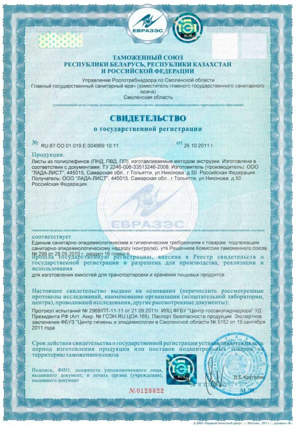 Сотрудничество с нами – это возможность приобрести ПНД оптом высокого качества от производителя по наиболее выгодным ценам. Компания «ЛАДА-ЛИСТ» реализует свою продукцию по всей России, удовлетворяя запросы клиентов из различных отраслей, среди которых МАЗ, ГАЗ, ЛиАЗ, BOSCH и другие. Наши товары сертифицированы международным органом «ТЮФ ТЮРИНГЕН» и Федеральным Агентством по Техническому Регулированию и Метрологии на соответствие ISO и ГОСТ.