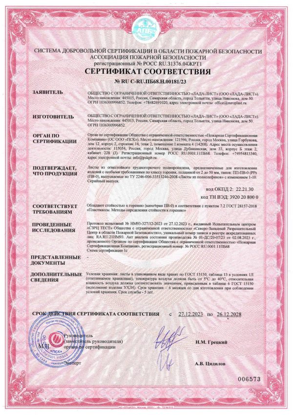 - ПП-С — листы из сополимера пропилена и этилена. Для эксплуатации при температурных значениях от -40 до +80°С.